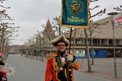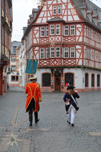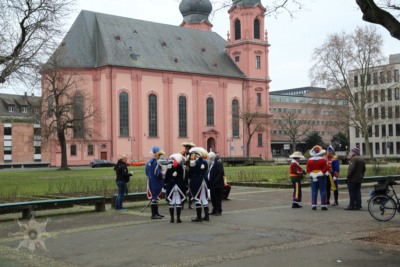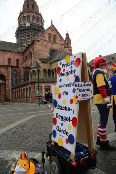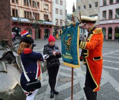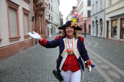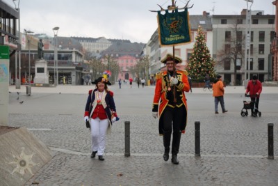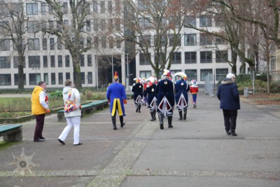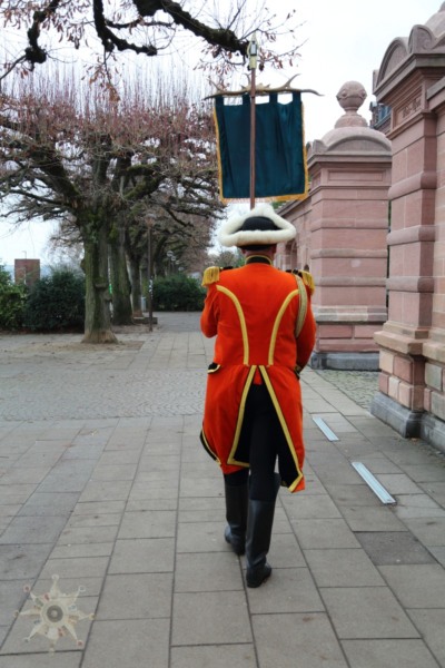 Nichts ist, wie wir es uns gewünscht hätten; Der Neujahrsumzug in der bislang ’normalen‘ Form kann nicht stattfinden. Die Coronaverordnung läßt keine Menschenmassen zu, aber ein Spaziergang durch die närrische Residenz ist nicht verboten. Da die Jägergarde nur aus einer Person besteht und einen anderen Weg gewählt hat, schließe ich mir ‚ihr‘ an und treffe schlussendlich doch einige weitere Gardistinnen und Gardisten.