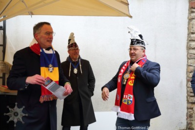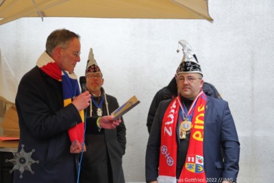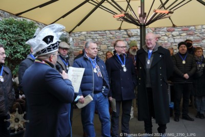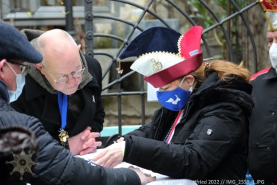 Ganz Coronakonform fand am 15.1.2022 im Innenhof vom Hof Ehrenfels der traditionelle Ordensempfang der Schwarzen Husaren statt. Die behördliche Genehmigung des Empfangs wurde auch durch den ersten Bürger unserer Stadt überwacht.