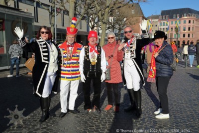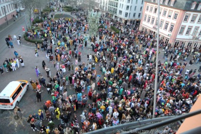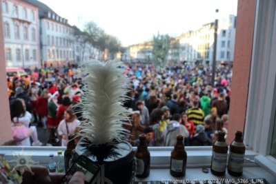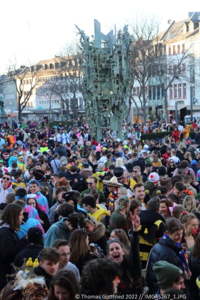 Dieses Jahr ist alles anders. Corona läßt immer noch keine Rosenmontagszug zu. Trotzdem treffen sich Freunde in der Stadt und auf dem Schillerplatz.